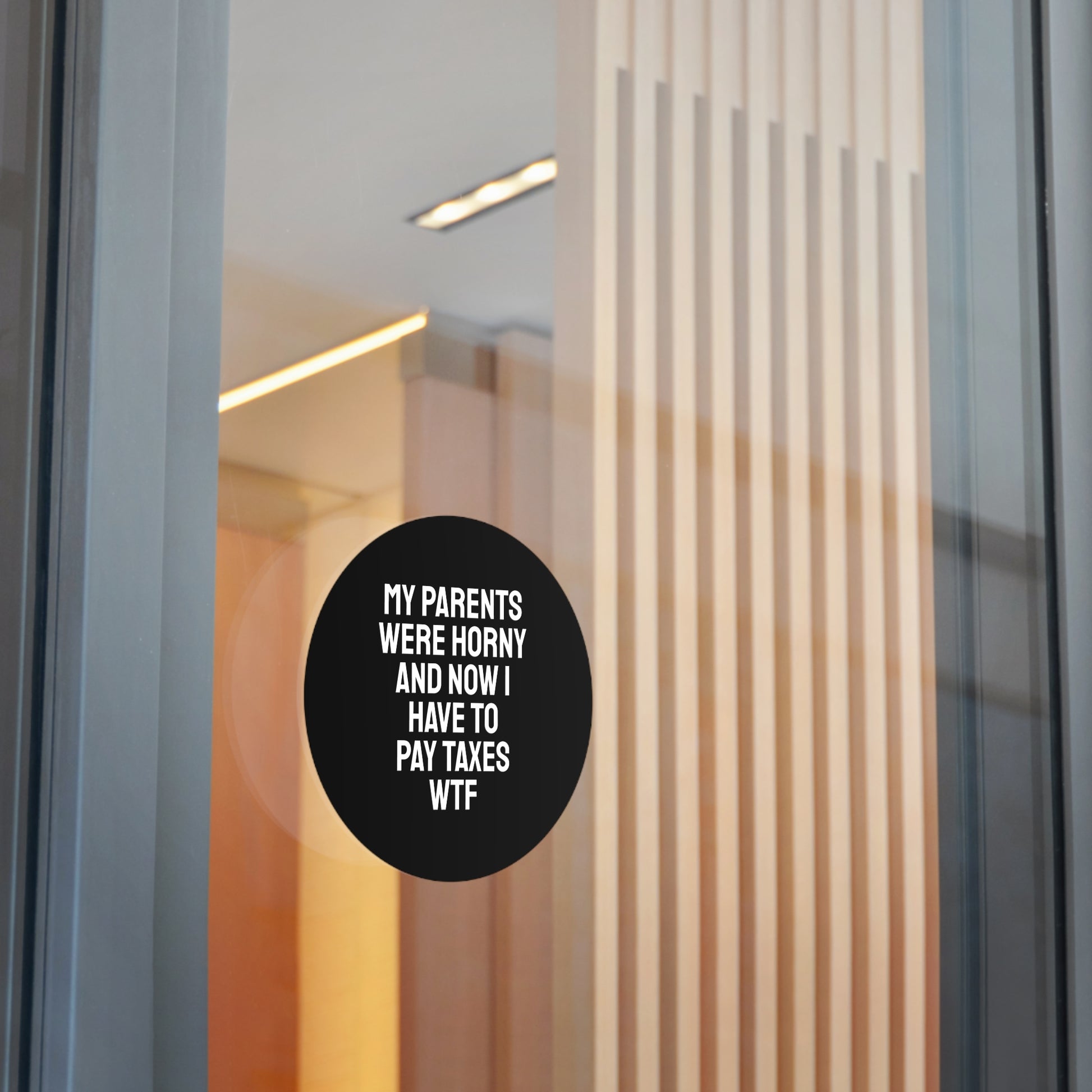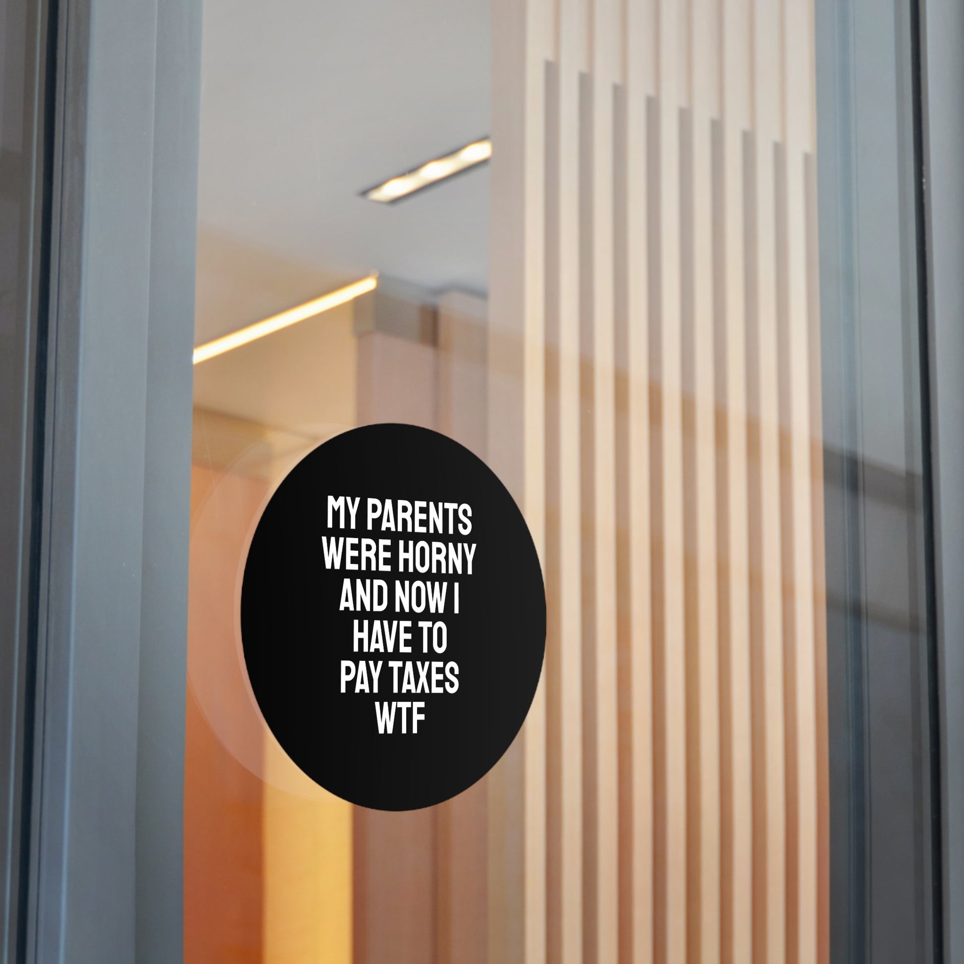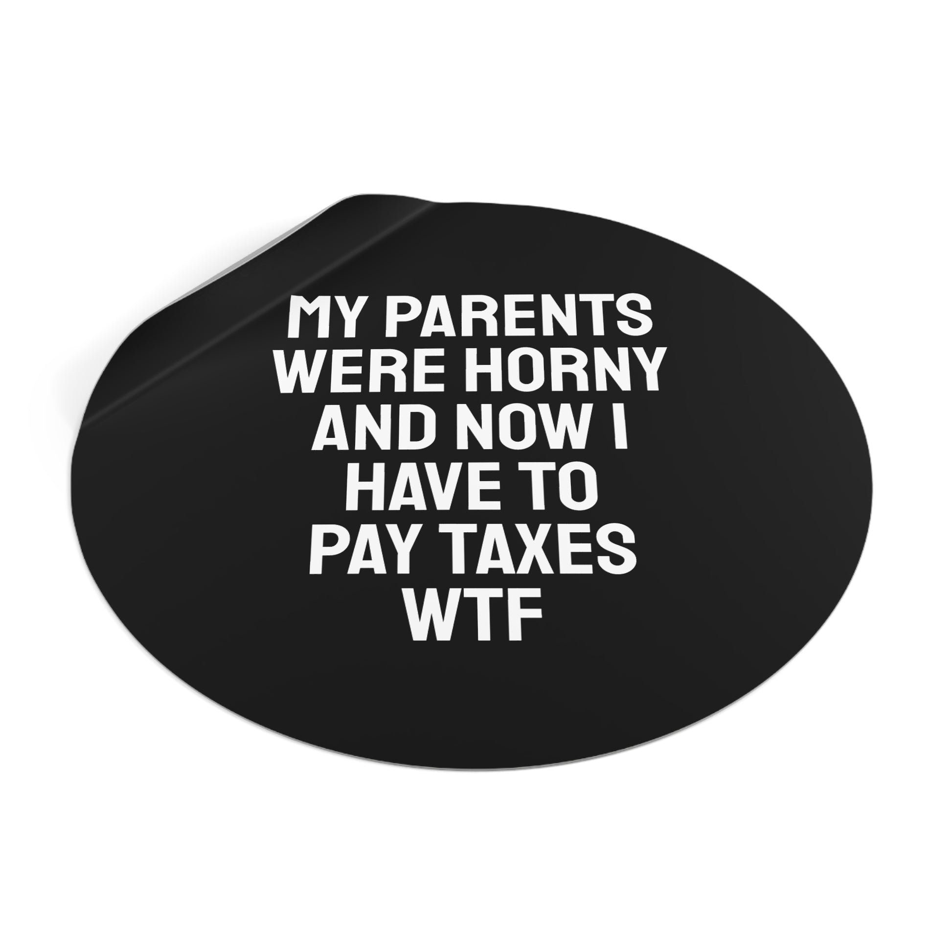 My Parents Were Horny And Now I Have To Pay Taxes WTF - Round Vinyl Stickers