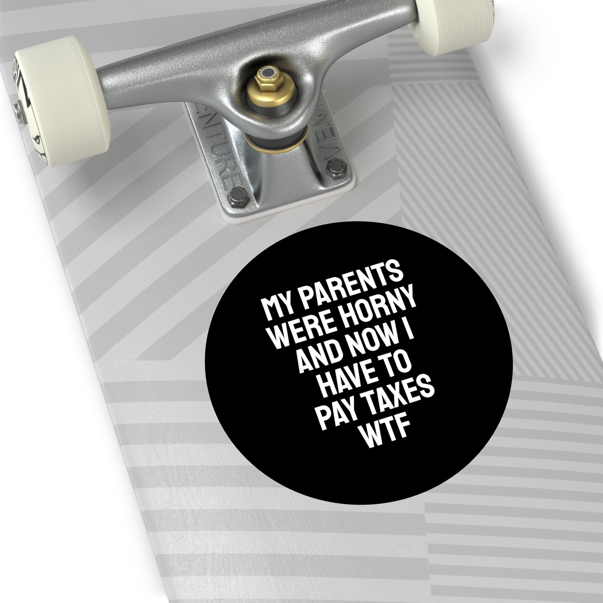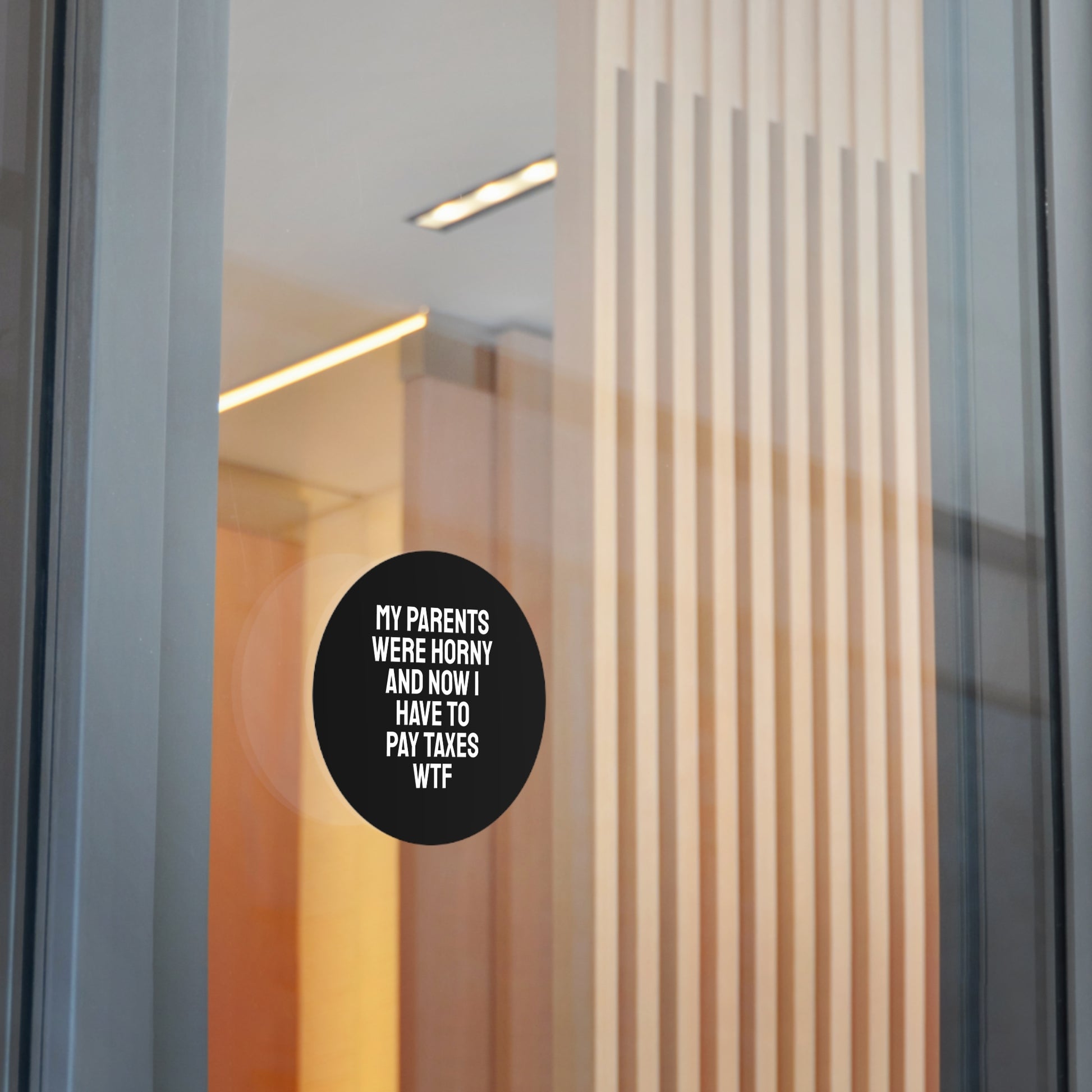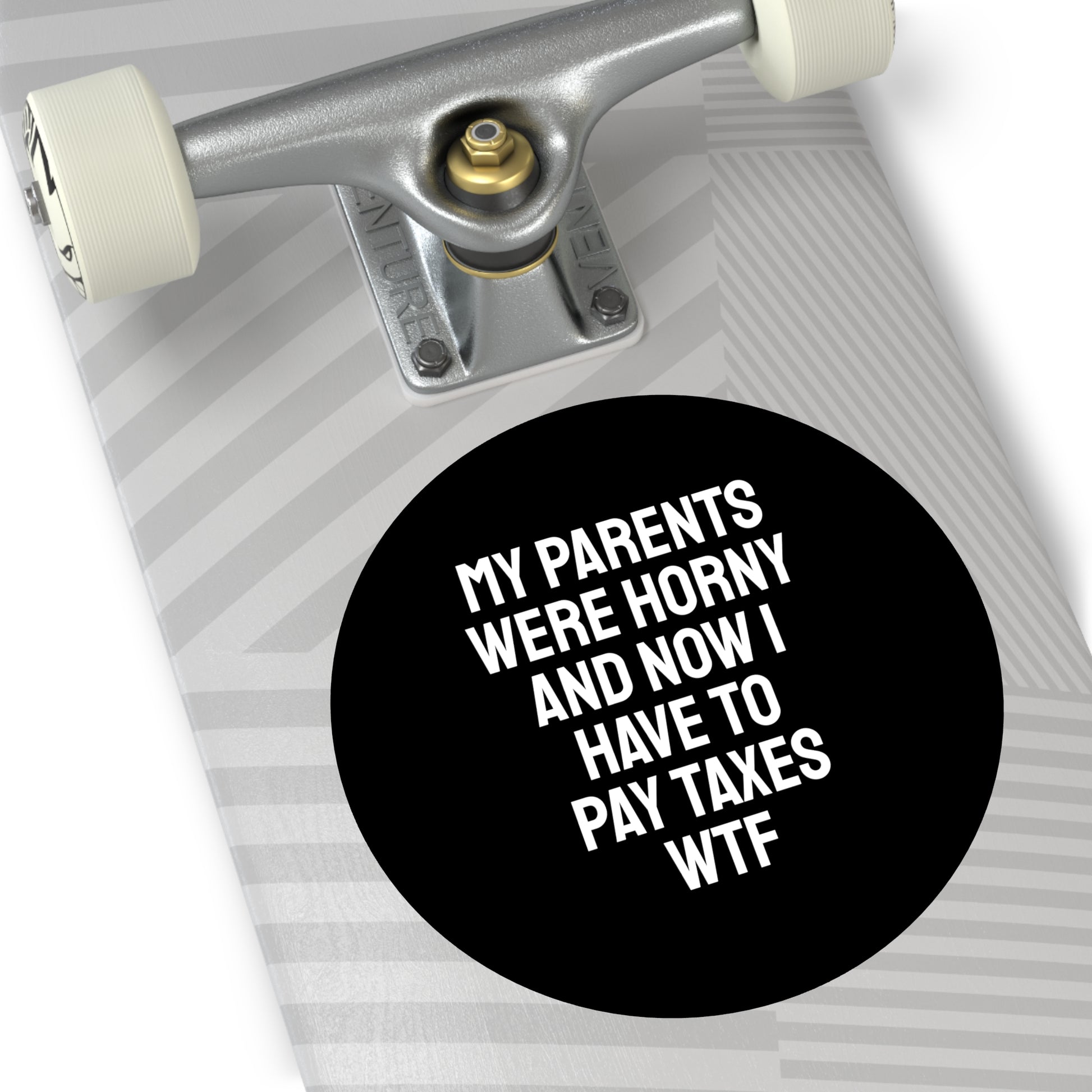 My Parents Were Horny And Now I Have To Pay Taxes WTF - Round Vinyl Stickers