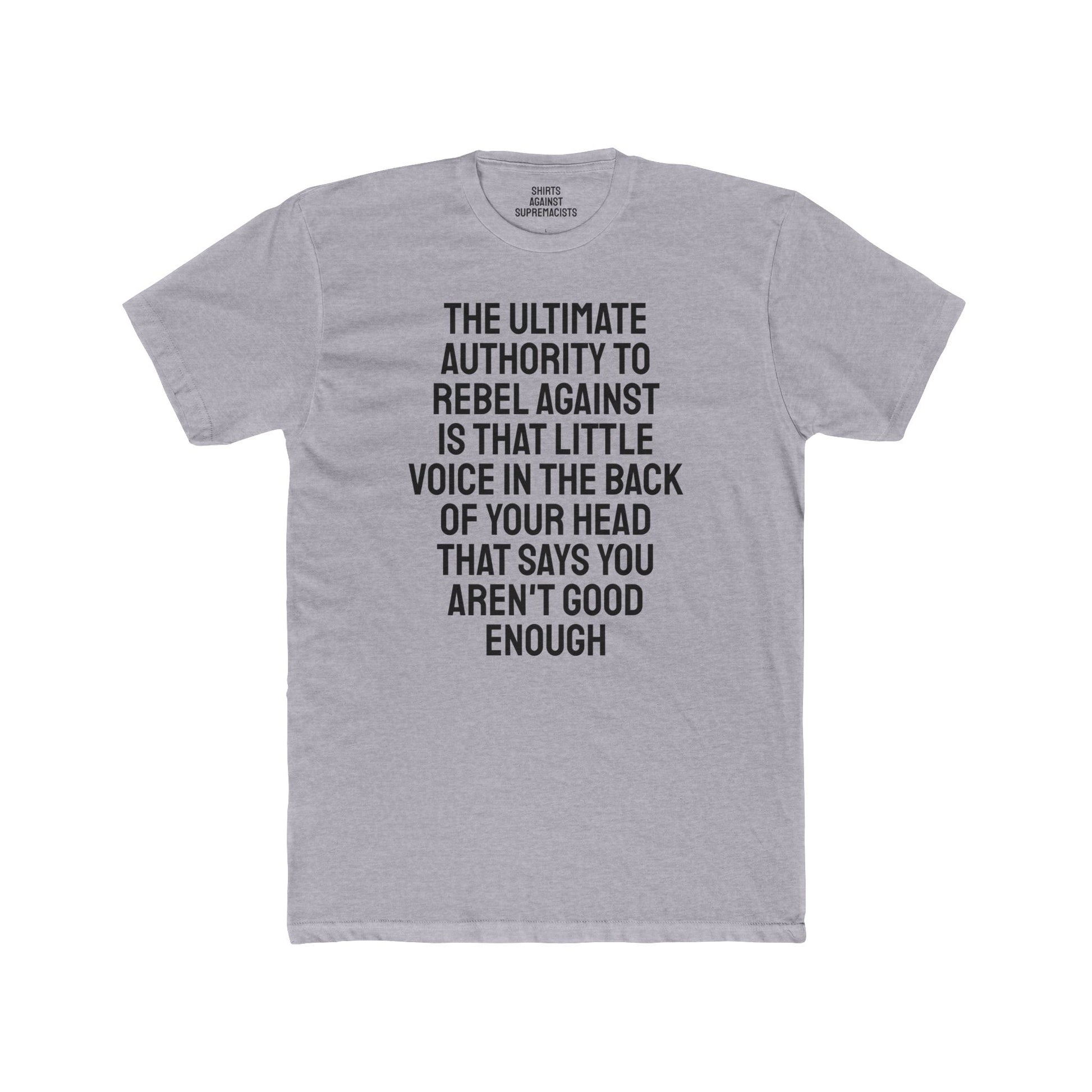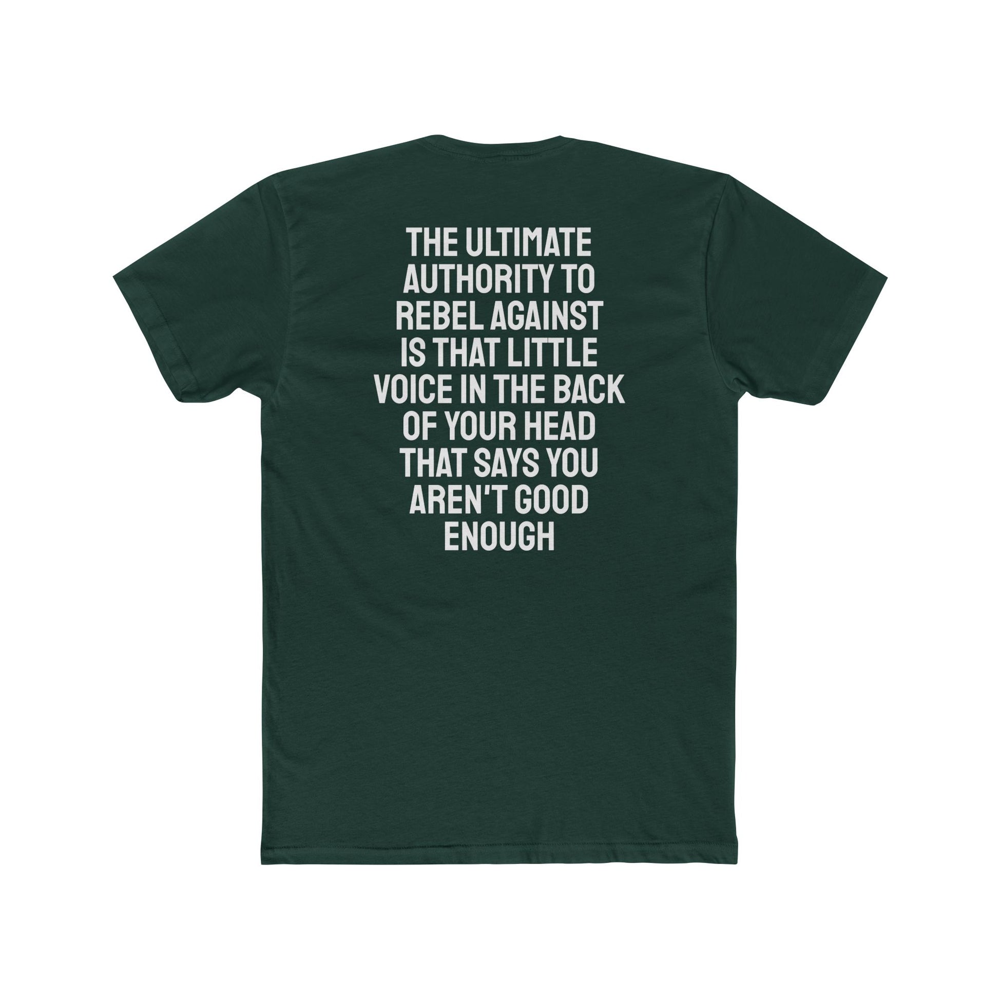 The Ultimate Authority To Rebel Against Is That Little Voice In The Back Of Your Head That Says You Aren't Good Enough - Unisex Cotton Crew Tee
