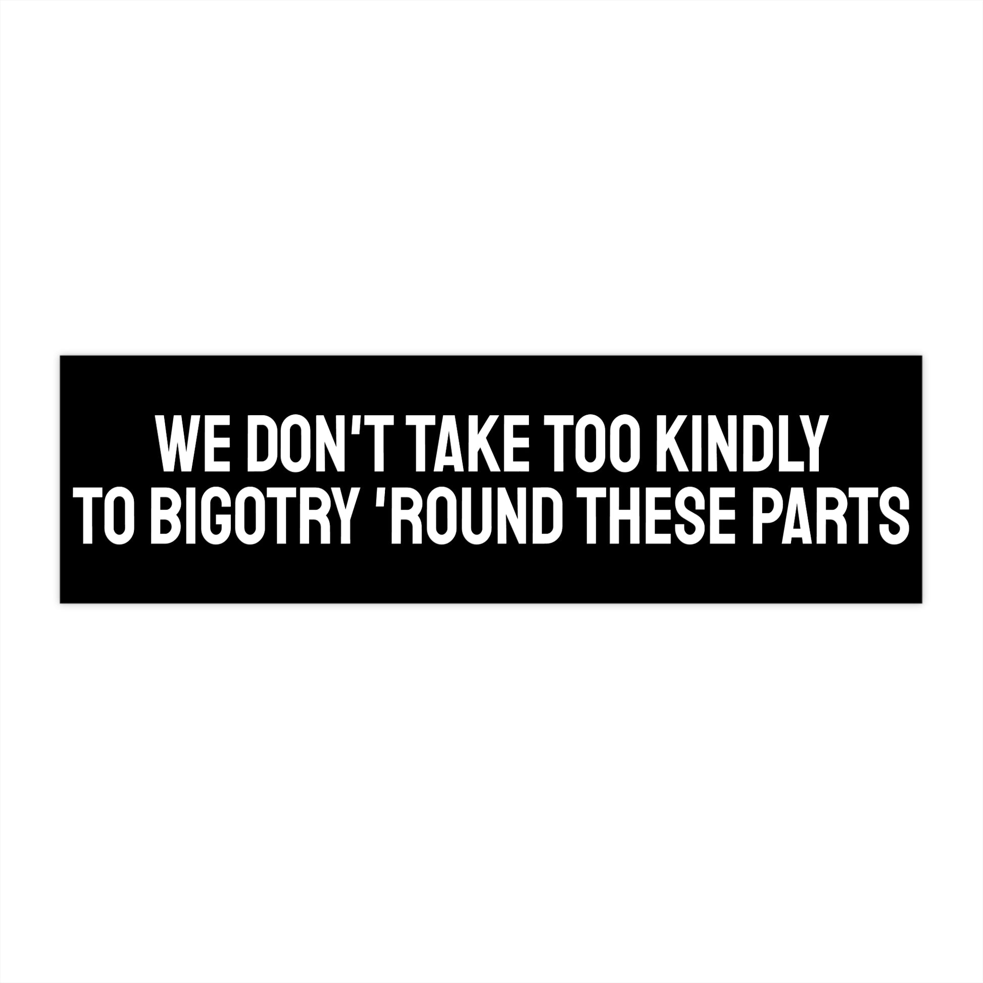 We Don't Take Too Kindly To Bigotry 'Round These Parts - Bumper Sticker