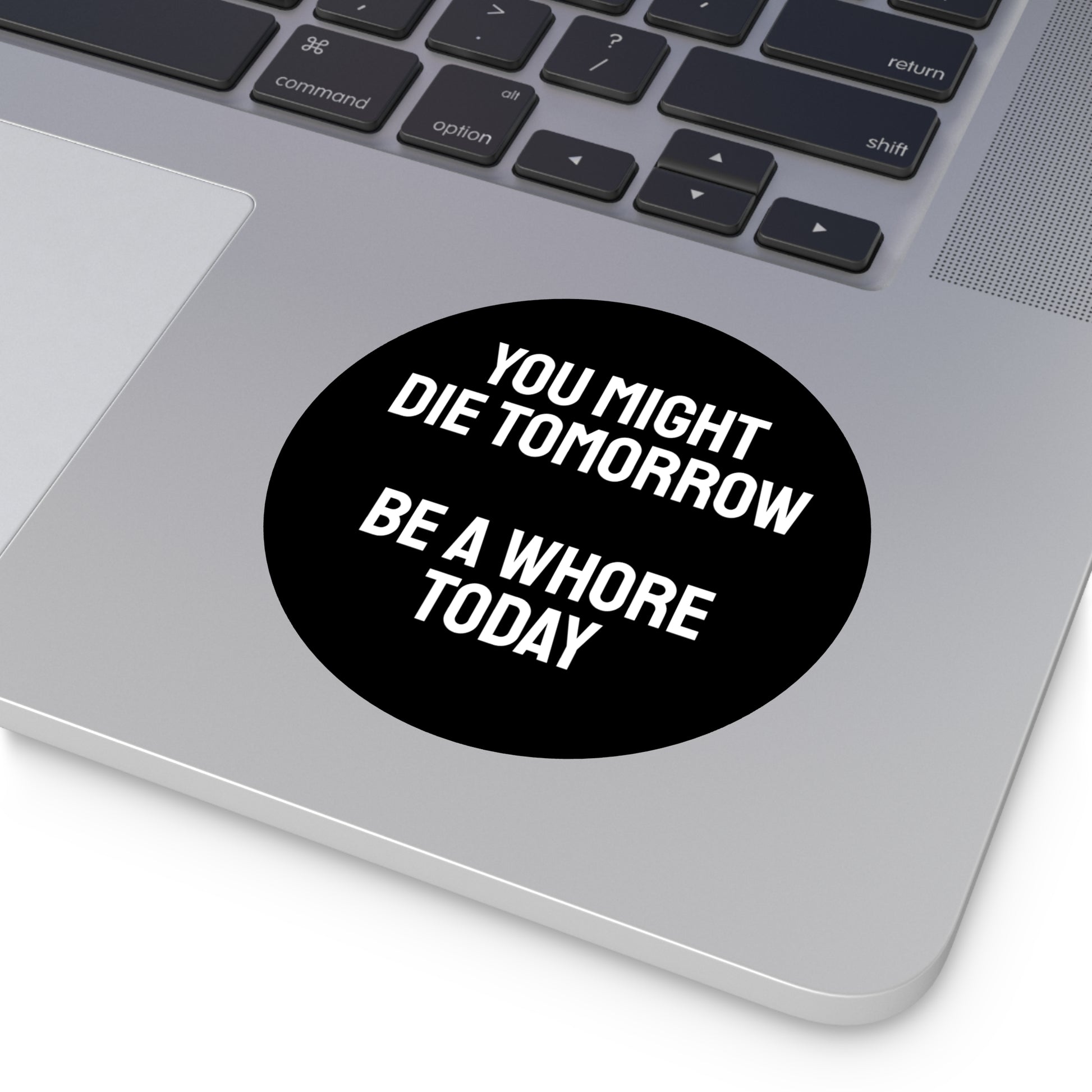 You Might Die Tomorrow Be A Whore Today - Round Vinyl Stickers