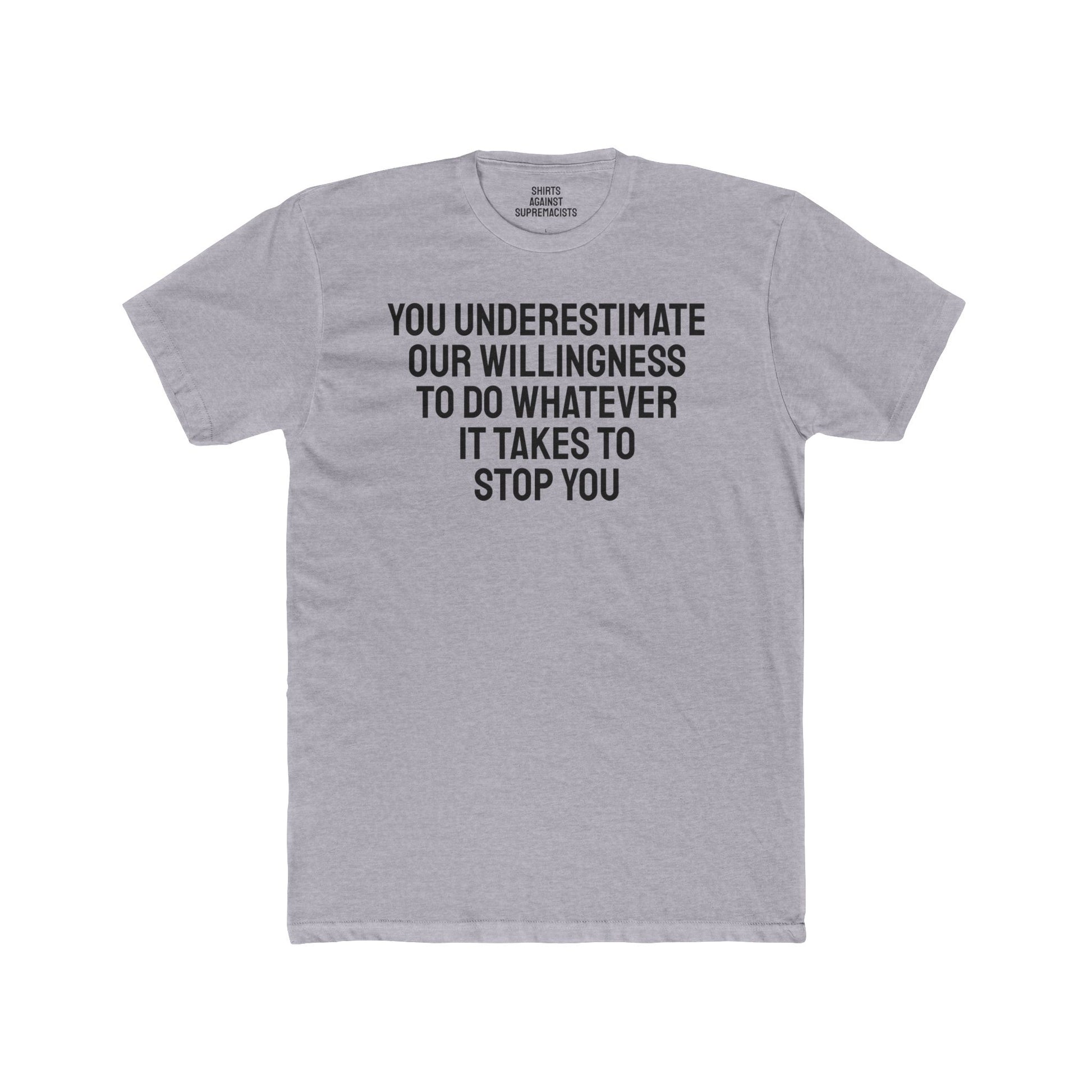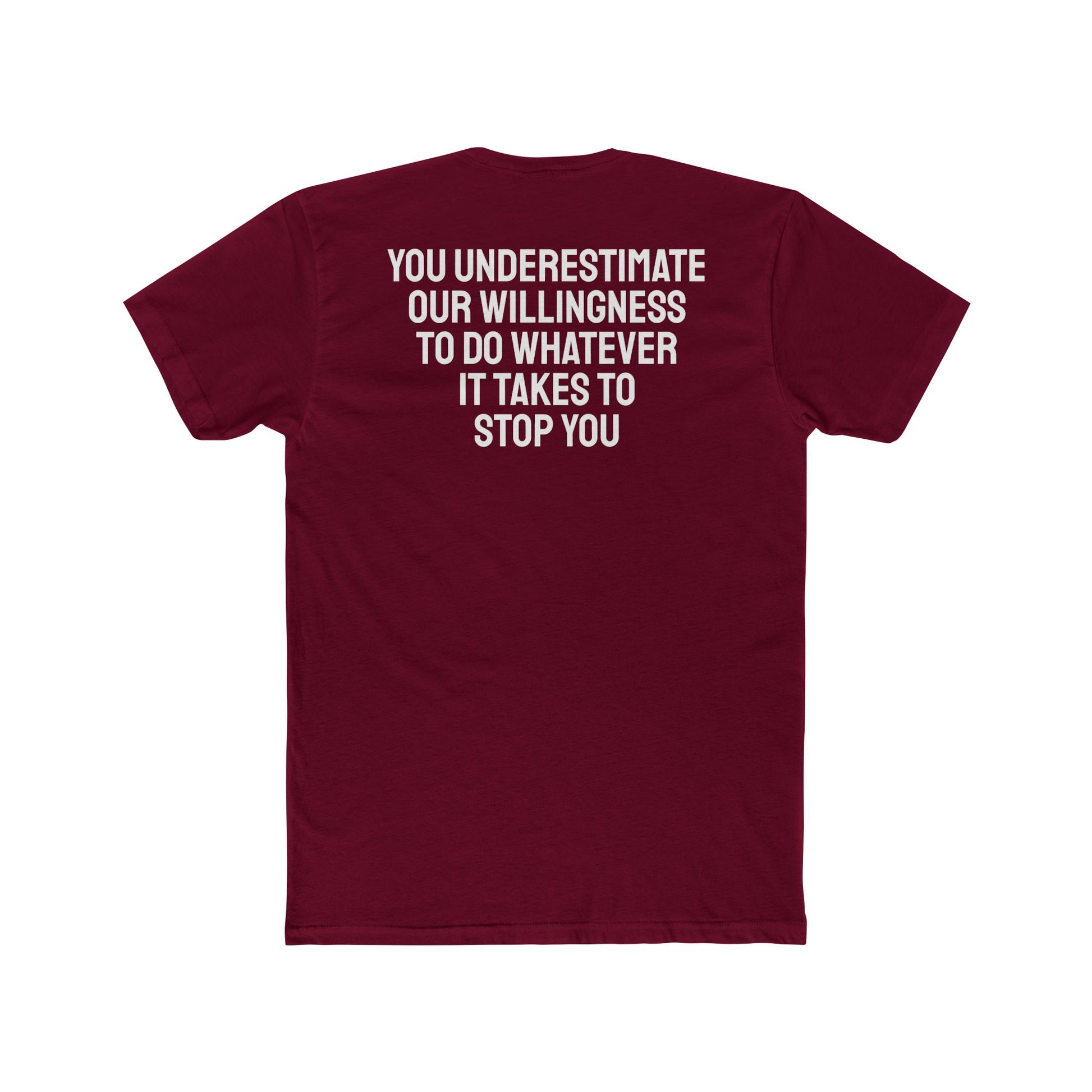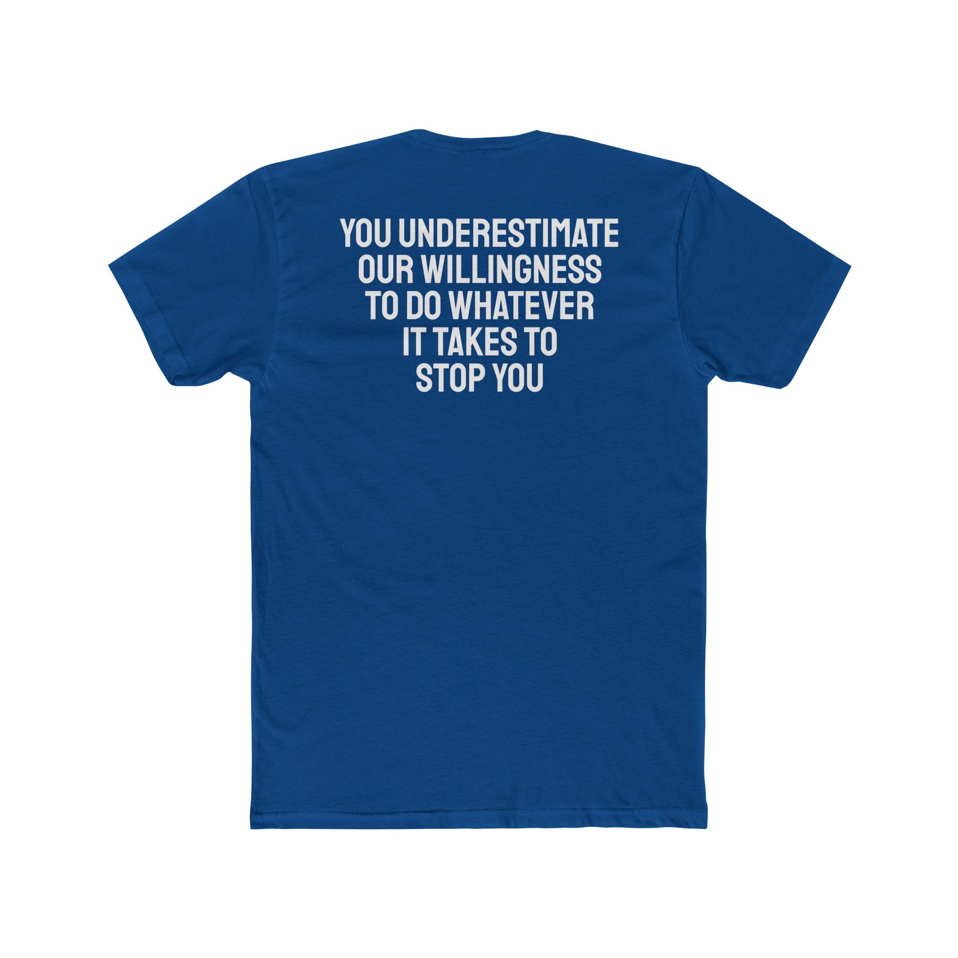 You Underestimate Our Willingness To Do Whatever It Takes To Stop You - Unisex Cotton Crew Tee